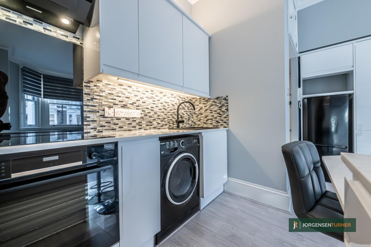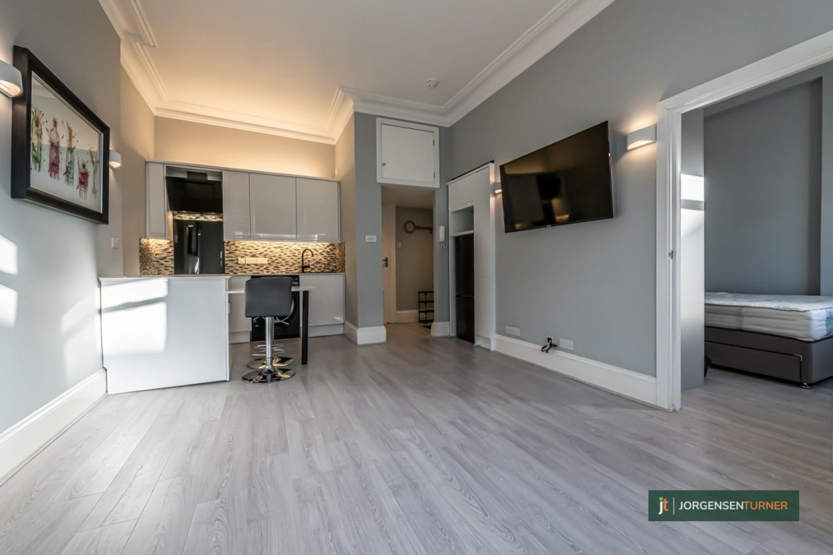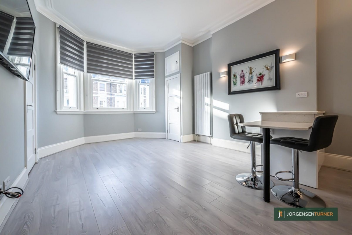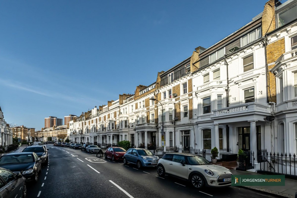 **STILL AVAILABLE** Jorgensen Turner Estate Agents are delighted to introduce to the market this charming first-floor apartment, perfectly located in Sinclair Gardens in the heart of Brook Green. This 386sqft property opens into a bright and airy open-plan living and dining area, boasting high ceiling. The double bedroom has built in storage , accompanied by a full modern bathroom.