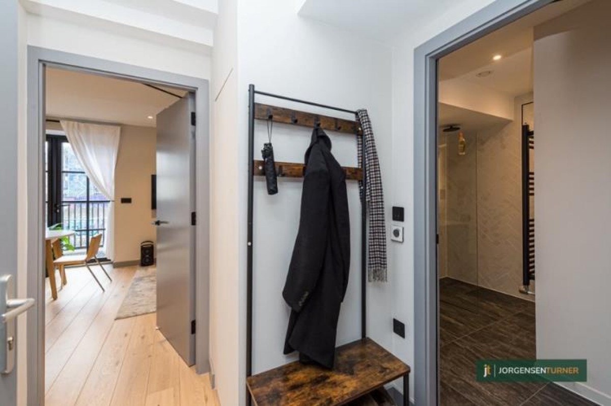 The studio features a fully fitted open-plan kitchen, designed to meet all your culinary needs, making it a delightful space for both cooking and entertaining. The boutique bathroom adds a touch of luxury, while the lovely balcony overlooking the tranquil canal provides an inviting spot to unwind during warm summer evenings.