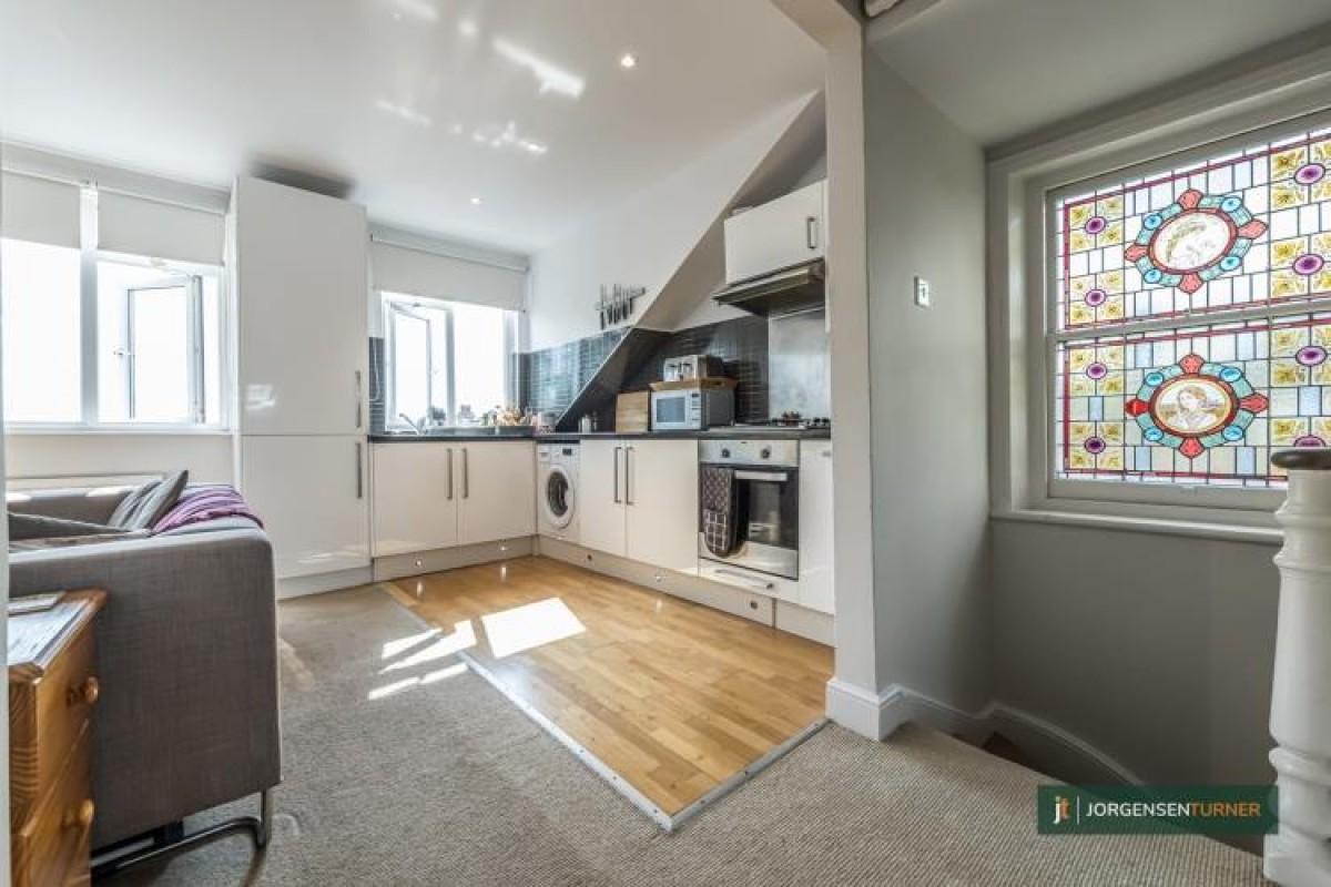 We are thrilled to present to you an exceptional opportunity to own a one-bedroom flat that exudes character and charm. With a quirky layout and a loft-style feel, this top-floor flat in a period conversion promises a truly unique living experience.Step into a world of contemporary elegance as you enter the fully fitted modern open-plan kitchen, where culinary adventures await. The cosy reception room offers a perfect space to unwind and entertain guests, while the modern bathroom adds a touch of luxury to your daily routine. The spacious bedroom boasts ample built-in storage, ensuring a clutter-free living environment.Prepare to be enchanted by the stunning stained glass windows lining the staircase, a testament to the intricate craftsmanship of a bygone era.This apartment is situated in a prime location, you'll enjoy glorious views of lush greenery, creating a serene atmosphere that soothes the soul. Convenience is at your doorstep, with shops and excellent transport links just a stone's throw awayRemaining lease- approx 962 years.,SC - Billed annually in July, last year it was £791.27, average cost over the last 5 years is ~£675. No GR